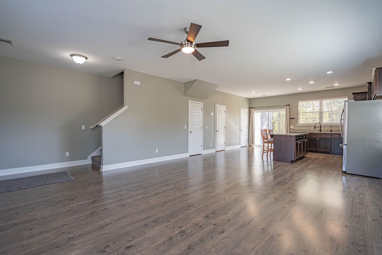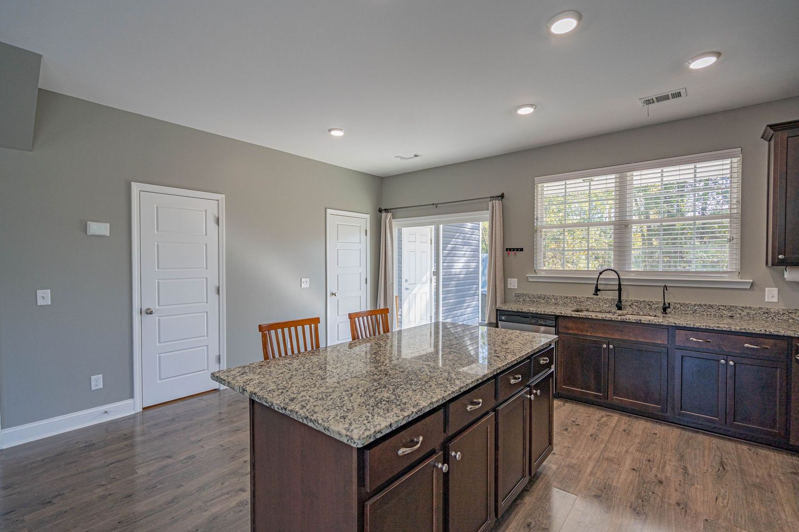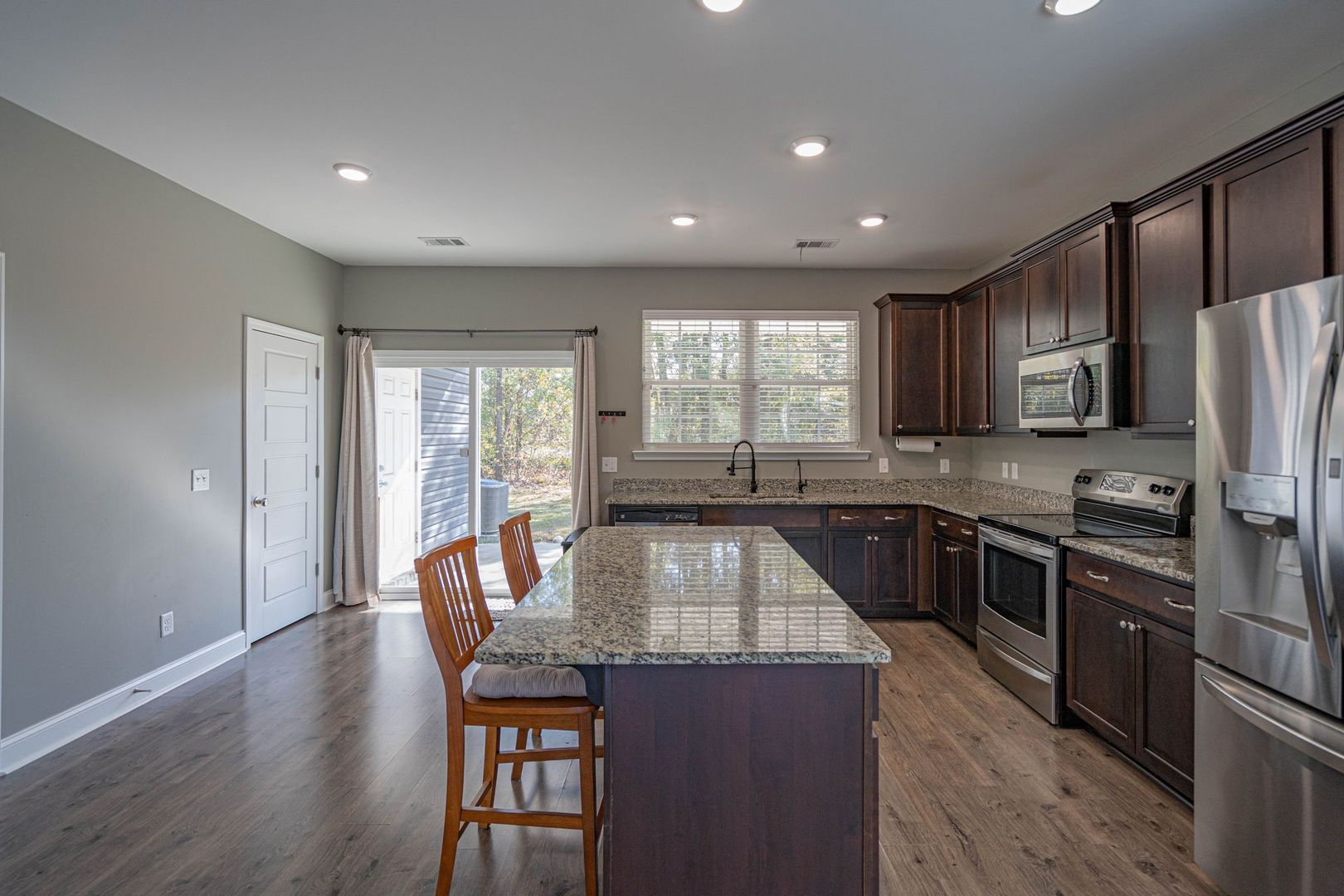 Well-maintained 3-bedroom, 2.5-bath end-unit townhome in Parkview Townhomes. Features a spacious, open-concept main level with wood-inspired flooring. The kitchen offers recessed lighting, a large center island, pantry, and direct access to the backyard. All bedrooms are located upstairs, including the primary suite with double vanity, soaking tub/shower combination, and generously sized closet. Rear yard backs to a wooded buffer and includes a patio ideal for grilling or relaxing. No smoking. Pets negotiable. Available now!